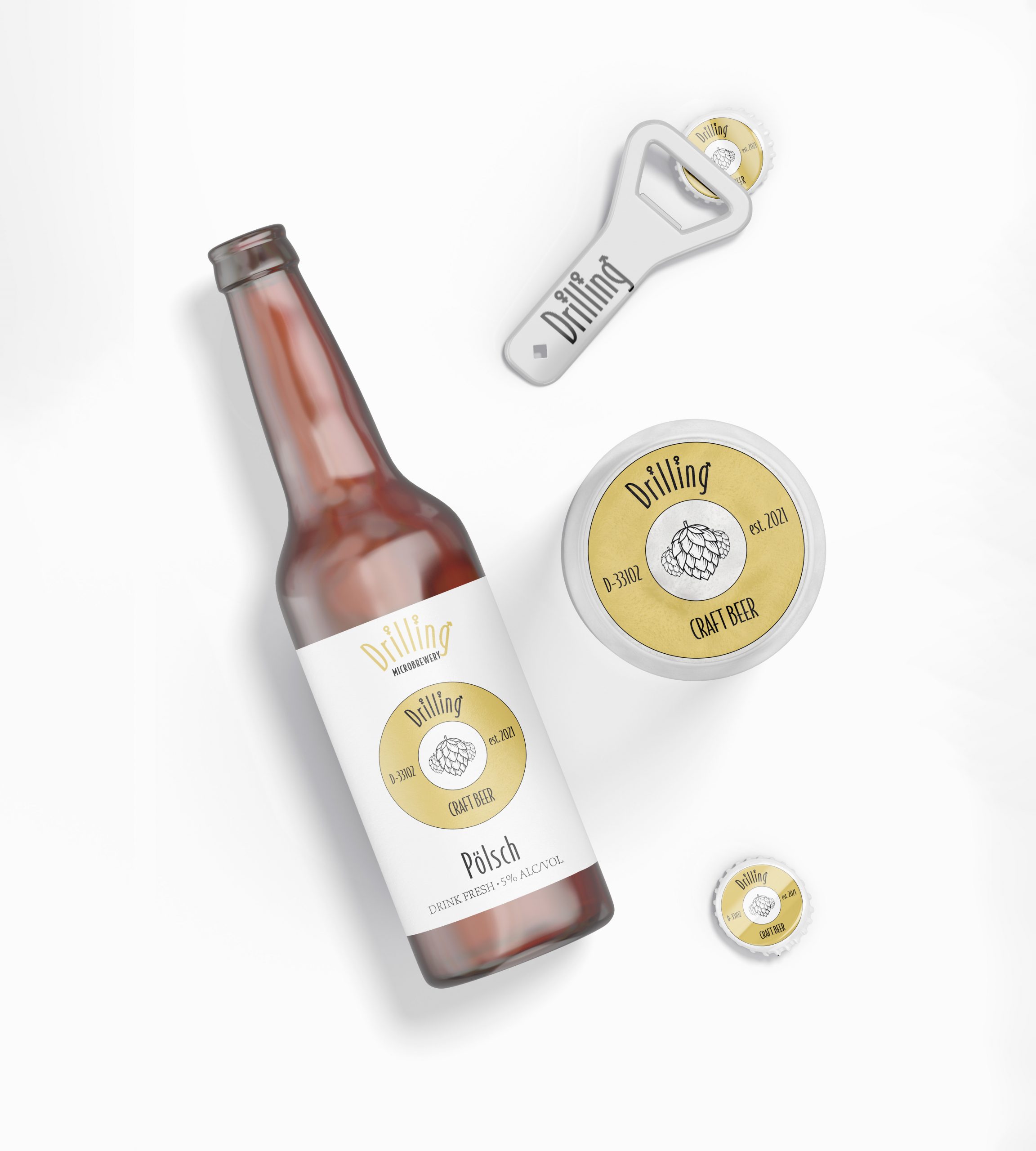Für die private Brauerei „Drilling“ in Paderborn entstand das Logo und die dazu passenden Etiketten.